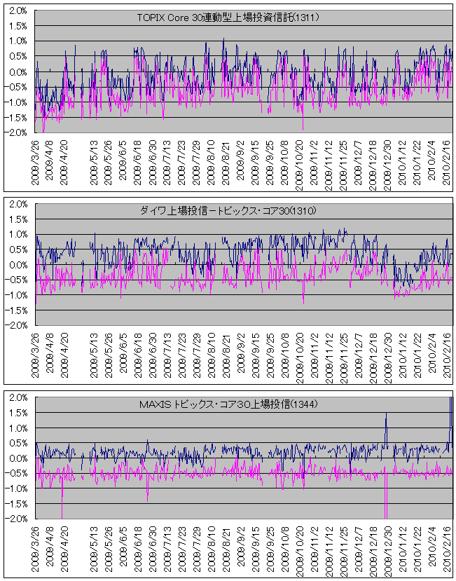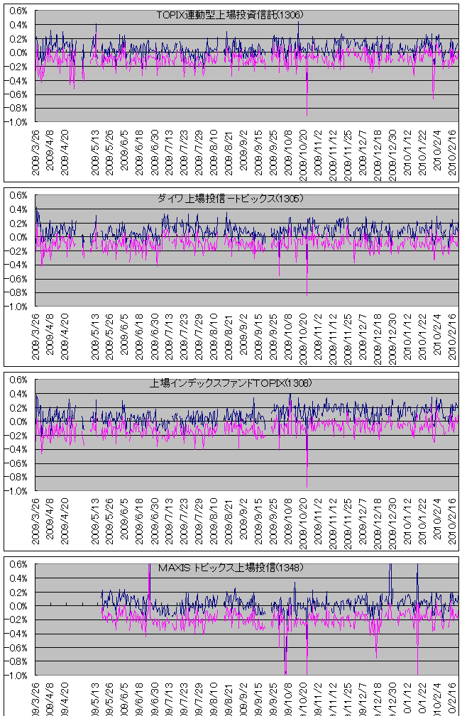 11:00と15:00の最良売買気配値とその時の推定NAVとの乖離率の推移をグラフにしてみました。