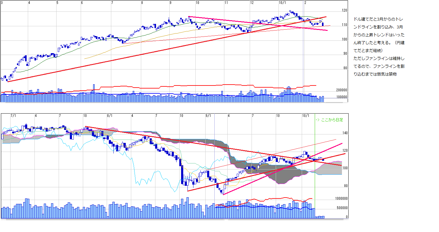 ・重要な下値支持ラインはすでに割ってる。