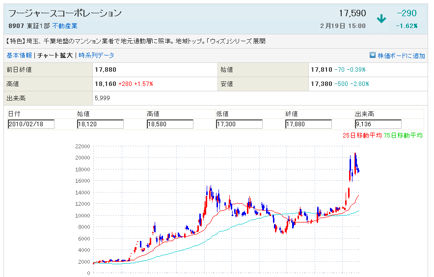 8907:フージャーコーポ 20830まで急騰しましたが今後はどう動くでしょうか??
