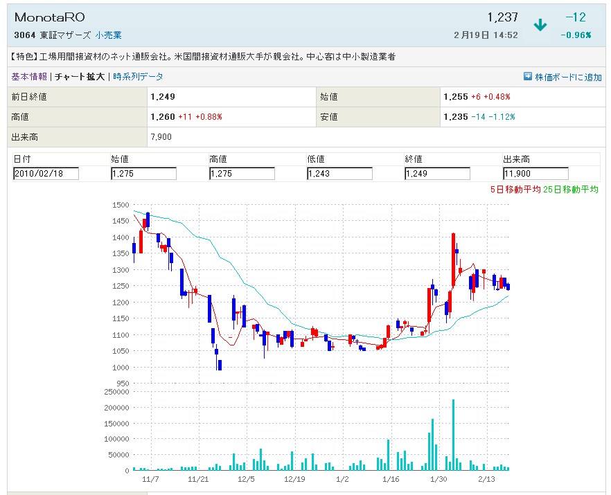 3064:MonotaRo 絶好の買い場到来となってるようです