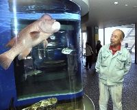 釣り歴約50年の水戸市の会社員小林さんは普段釣りあげた魚を友人にプレゼントするのだが、80cmのコブダイを初めて釣ってしまい、慌てて大洗水族館に連絡した。