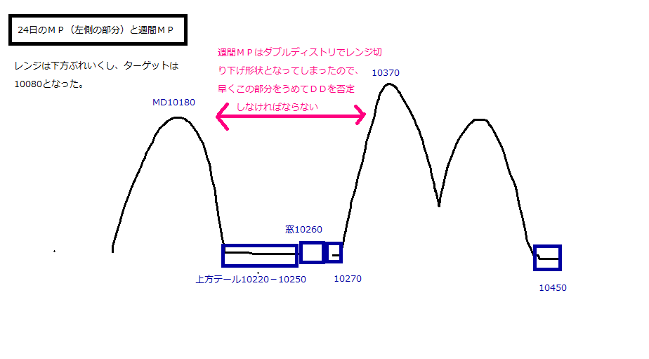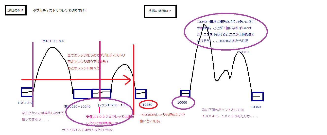 ・先週とは反対に10220-10270にレッジ+窓を残してダブルディストリでレンジ切り下げとなってしまった。