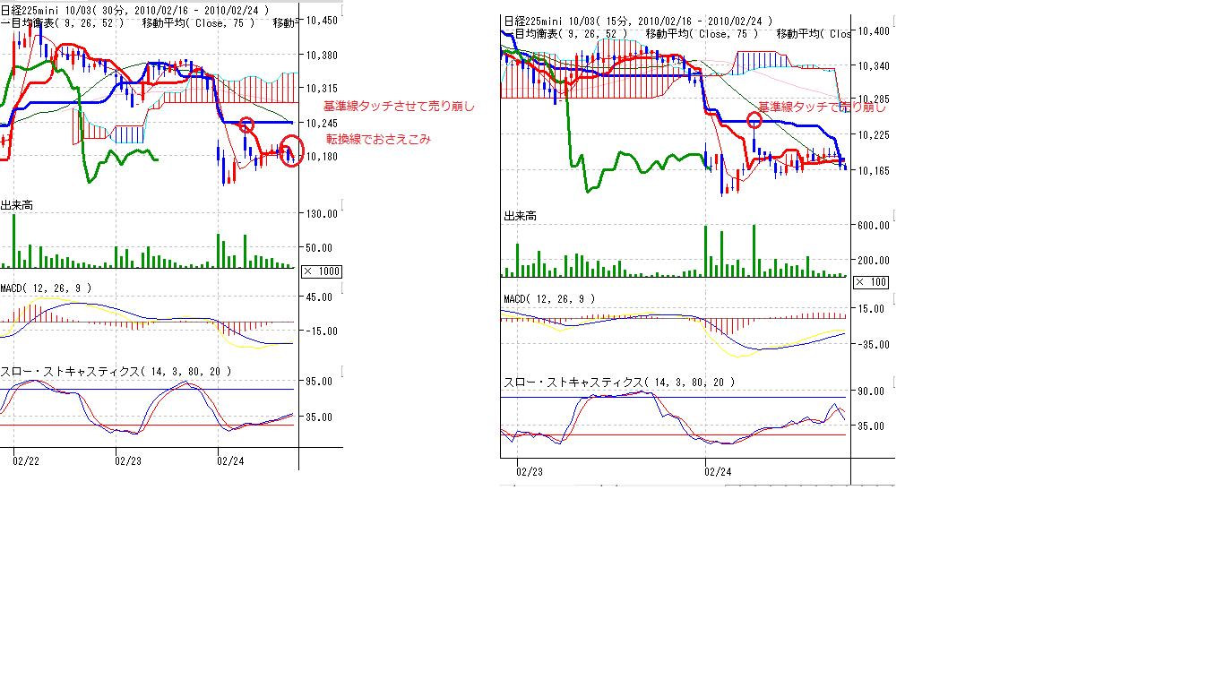 ・5分足ではわからないポイントも、30分足、15分足ではよくわかります。