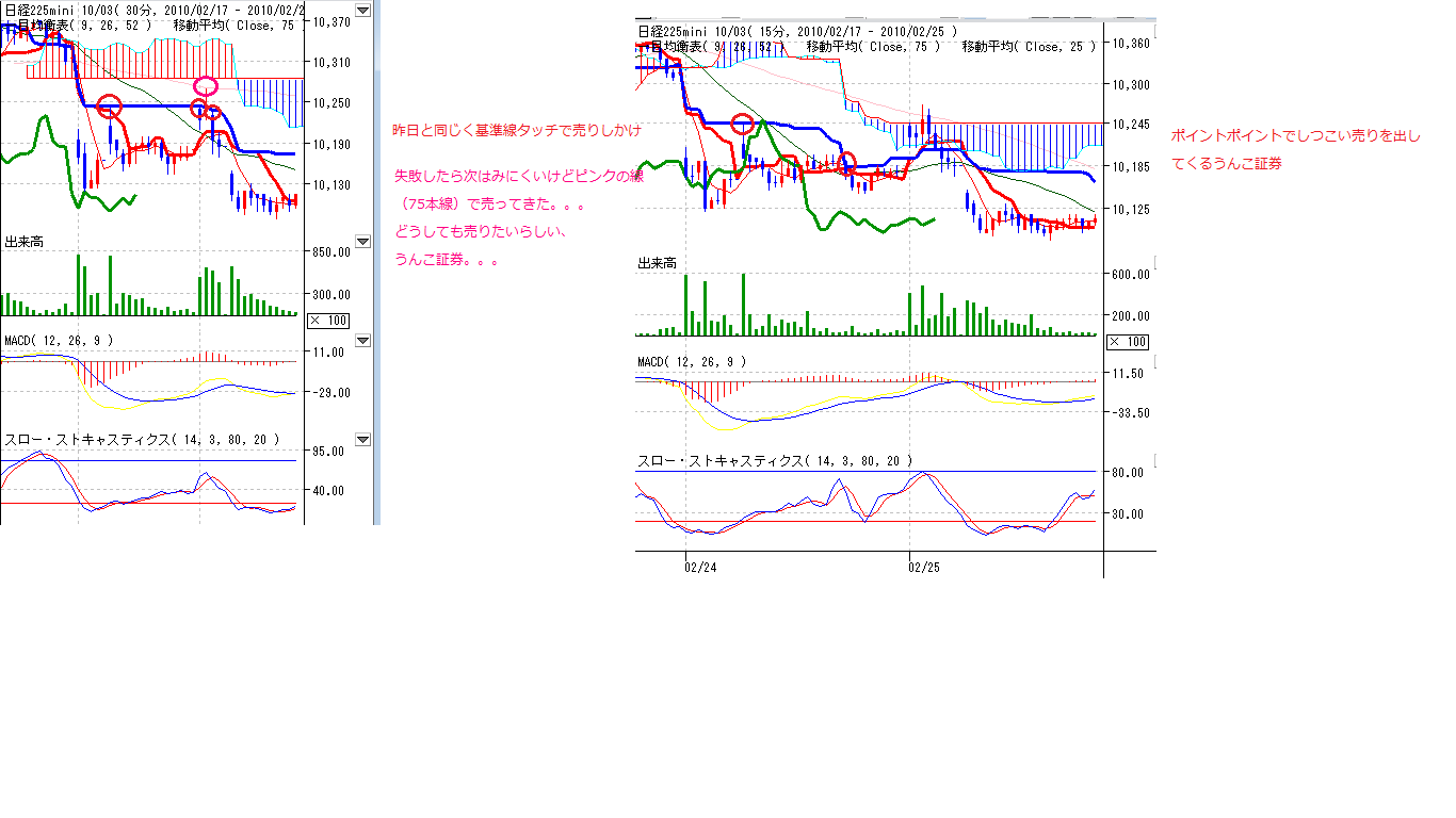 ・30分足基準線でしつこい売りをしかけてくるうんこ証券。