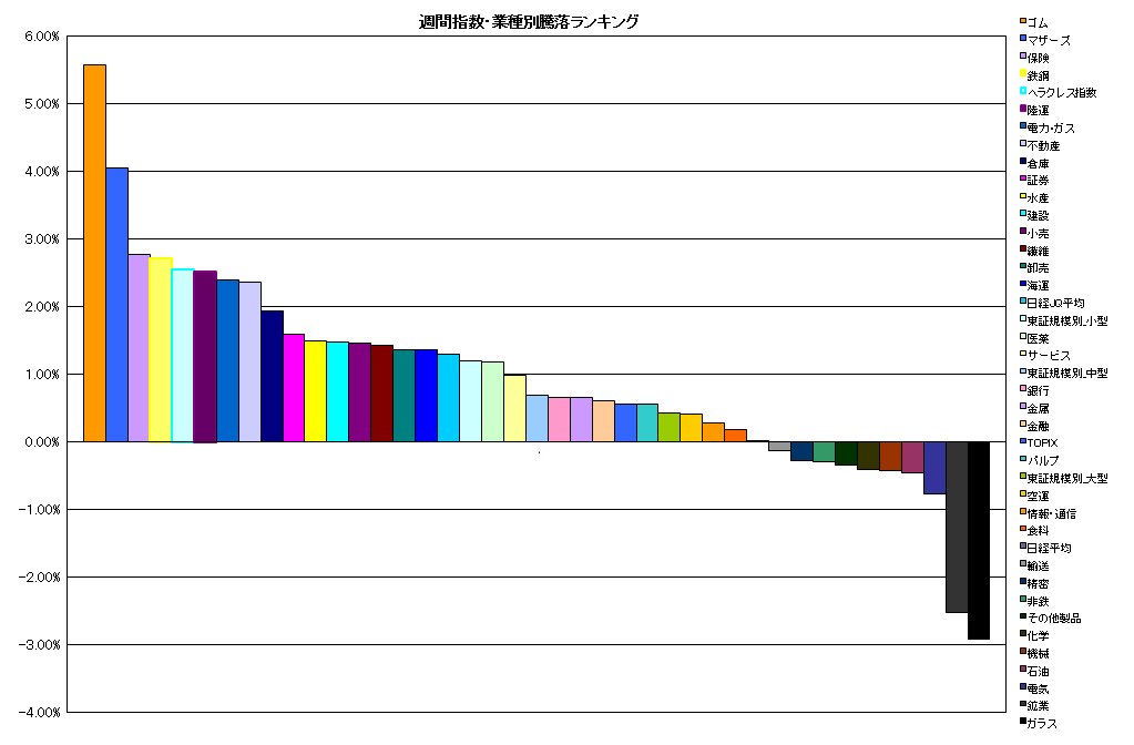 週間 指数・業種別騰落ランキング