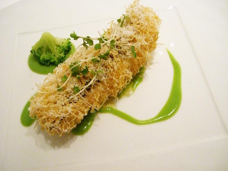 的鯛のフリット、サクサクの糸のような衣をまとった、ジューシーなお魚料理です。下村さんお馴染みの料理です。これ、大好きなんです。