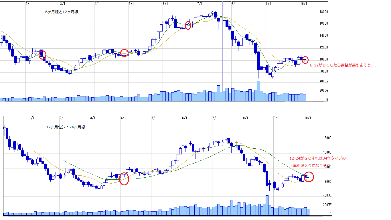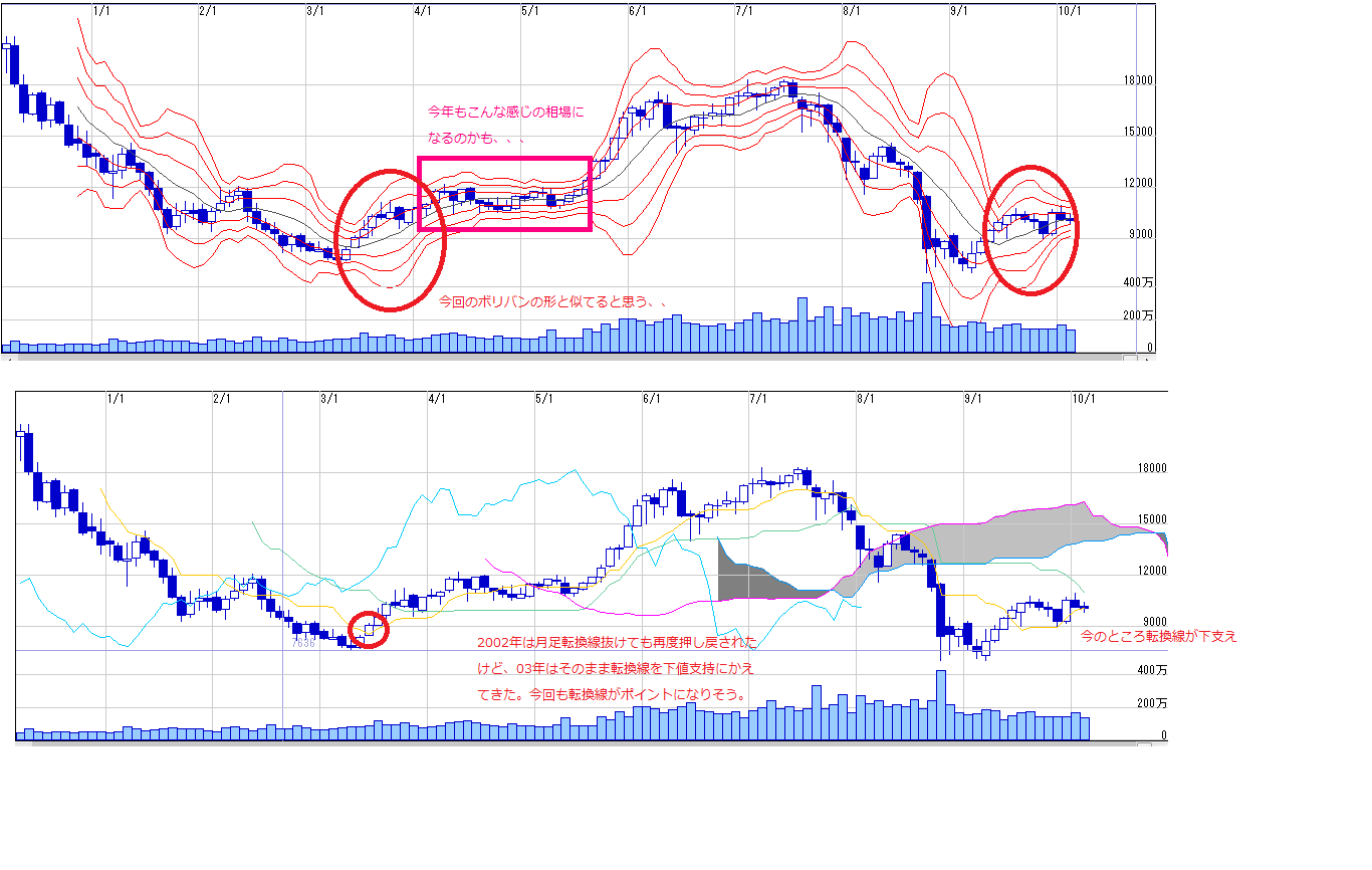 来週のポイントではありませんが、2002年型の相場になるか、2003年型の相場になるかチャート分析したいと思います。