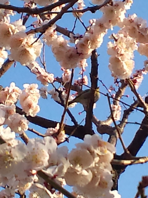 写真ではうまく撮れませんでしたが、梅にメジロが2、3羽寄ってきていました。