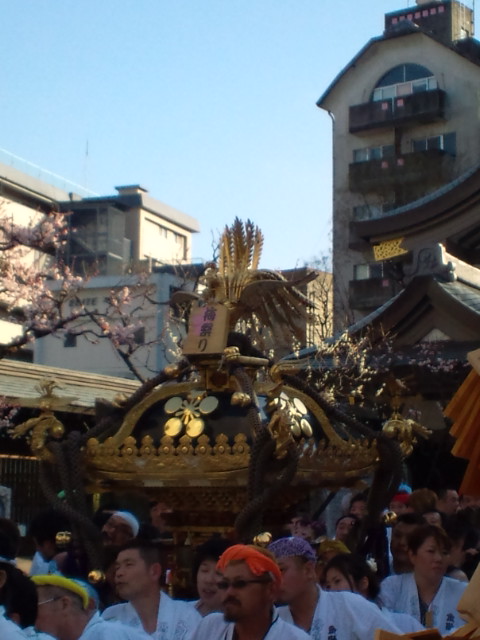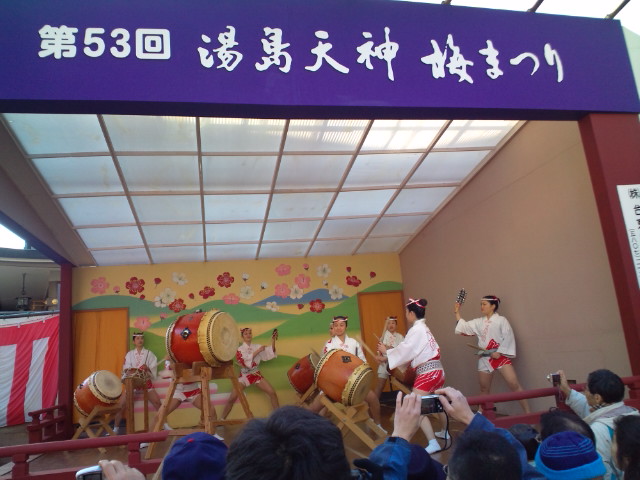 今日東京は午前中は雨でしたが、昼になると雨がやんだので湯島天満宮の梅まつりに行ってきました。