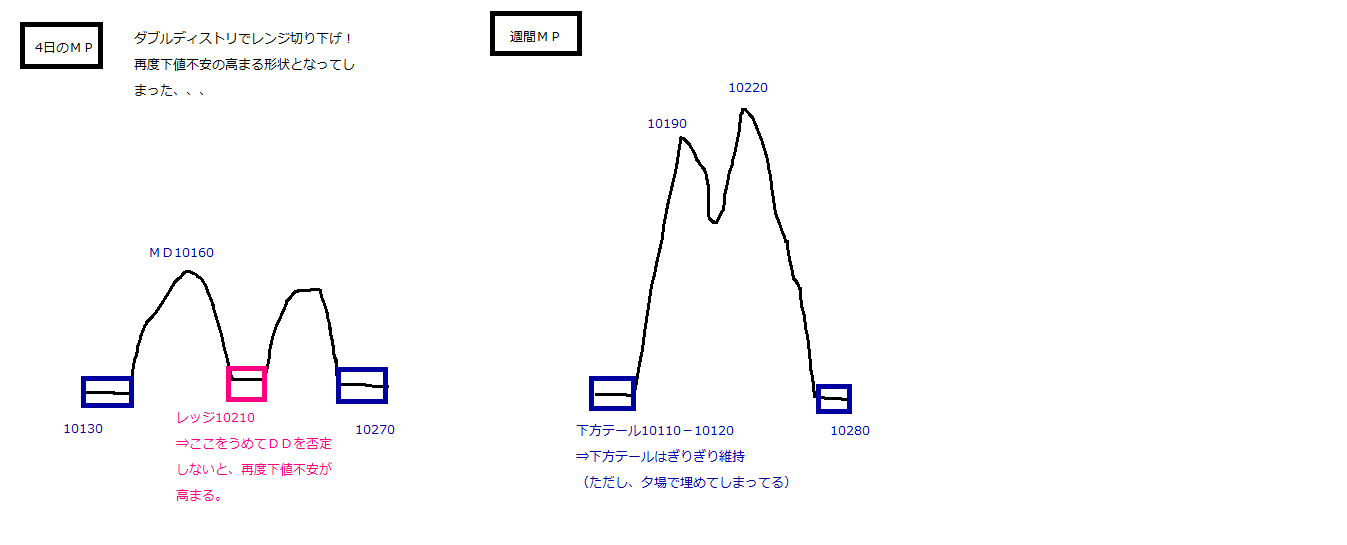 ・昨日は先週のレッジうめでダブルディストリ否定したのが、本日新たにダブルディストリ形成でレンジを切り下げてしまった。