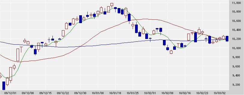 200日移動平均線 10,047↑