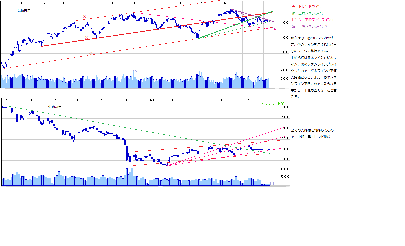 まずは重要なポイントは10550付近、それがこえられたら10700もありかと思う。