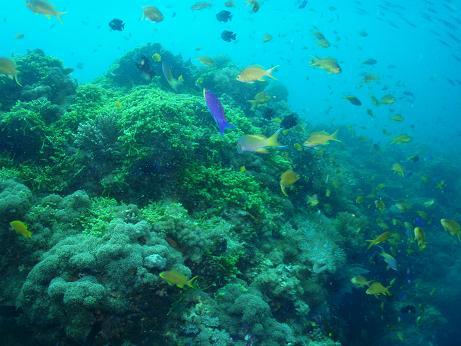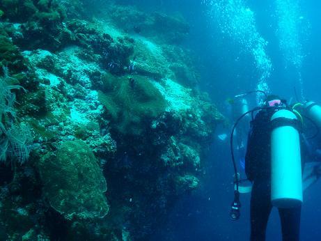 ドロップオフの壁際はたくさんの魚の棲みかになっています。