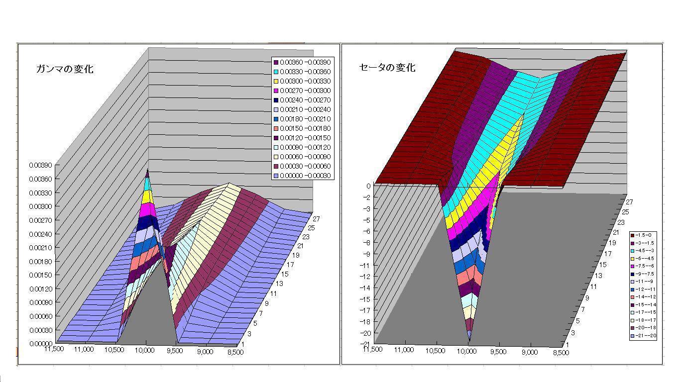・残存日数が少なくなるとATのガンマが加速度的に大きくなる=プレミアムの変動率が大きくなる(あ、でもセータで打ち消されるので結局はプラマイゼロって事???)
