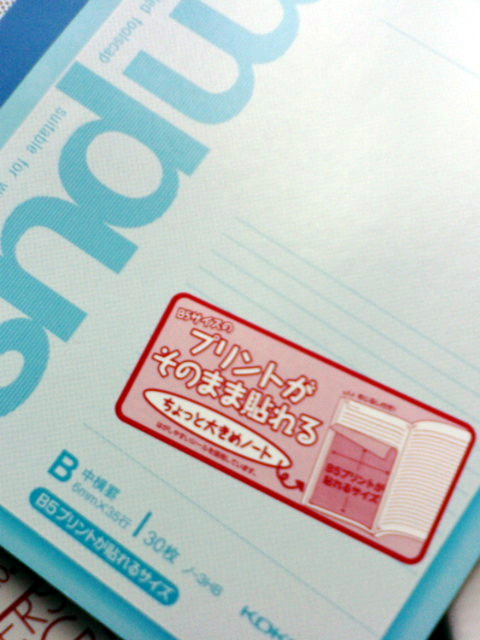ノートはプリントがそのまま貼れるらしい。