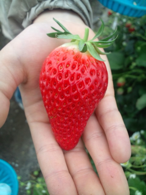 去年は終盤の5月に行ったためか、イチゴが小ぶりで実もやわらかめだったんですが、今年は大粒のイチゴもたくさんあり、甘くておいしかったです。