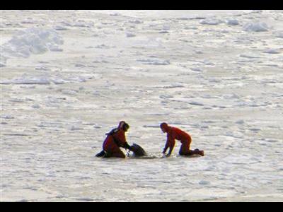 동이라고 붙는 얼음 에 끼워지고 돌고래를 나올 수 없게 되어 버리고 있는 곳(중)을, 16세의 소년들이 구출했다.