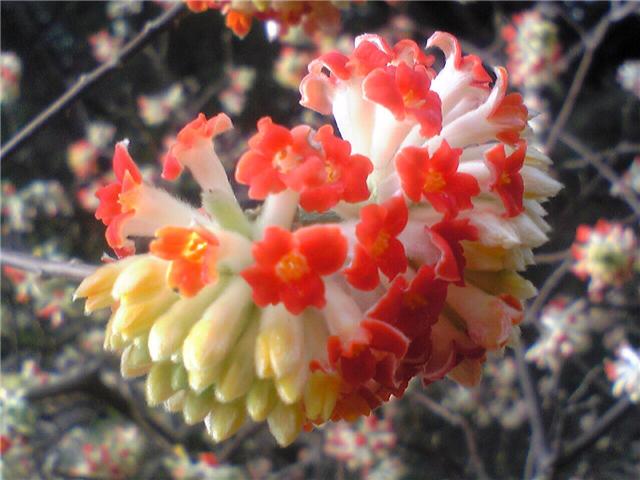 はな、ミツマタ、和紙:和紙の元になるミツマタですが、花がこんなに綺麗です。