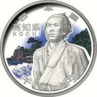 地方自治法施行60周年を記念して都道府県ごとに発行される硬貨の高知県分で、桂浜を背景に、懐に右手を入れたおなじみのポーズの龍馬を描いているそうです。