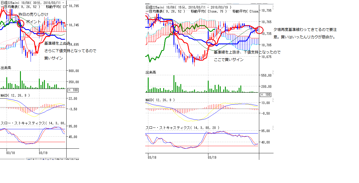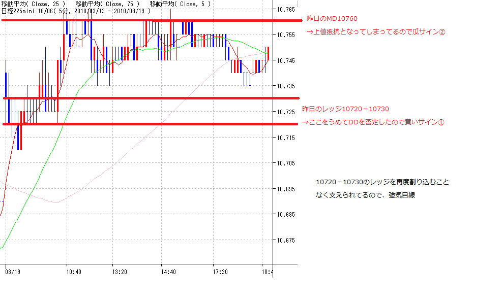 ☆MPと窓は買いサイン、CMFとDMIは天井サインでテクニカル指標はばらばら、、、なので方向感つかめず(;;)なので、1枚だけ持ち越し中の10795売りは夕場で10740で再度両建て。