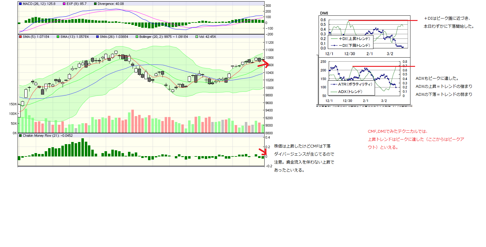 CMFの仕組みについては不勉強ですが、売買高が増えてこないことが影響しているってことはないですかね?全体としては薄商いが続いていますし、完全需給相場モードに突入し、狂ったように上げ続けている一部の銘柄を除くと、そんなに上げている感じがしないような気がします。