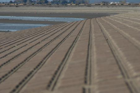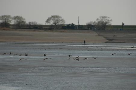 干上がった水辺は、カモにとって餌を獲るのに好都合なのだろうか?