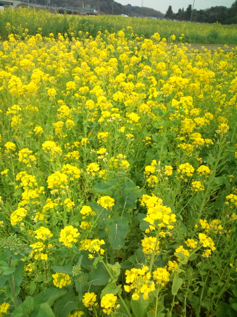 今の季節、道路向かいが菜の花畑になっています。