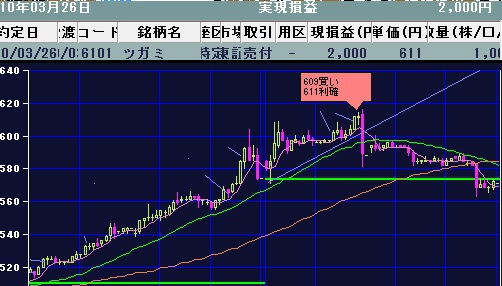 613まで上がって安心してたらまた下がったのでビビリ利確でした。