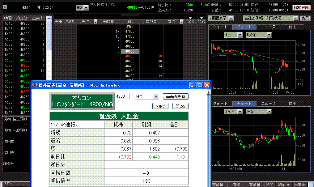 >・オリコンが後場に入って急落し、一時ストップ安。そして引け後に下方修正がでました。どうみてもインサイダーです。空売りも思いっきり入っています。