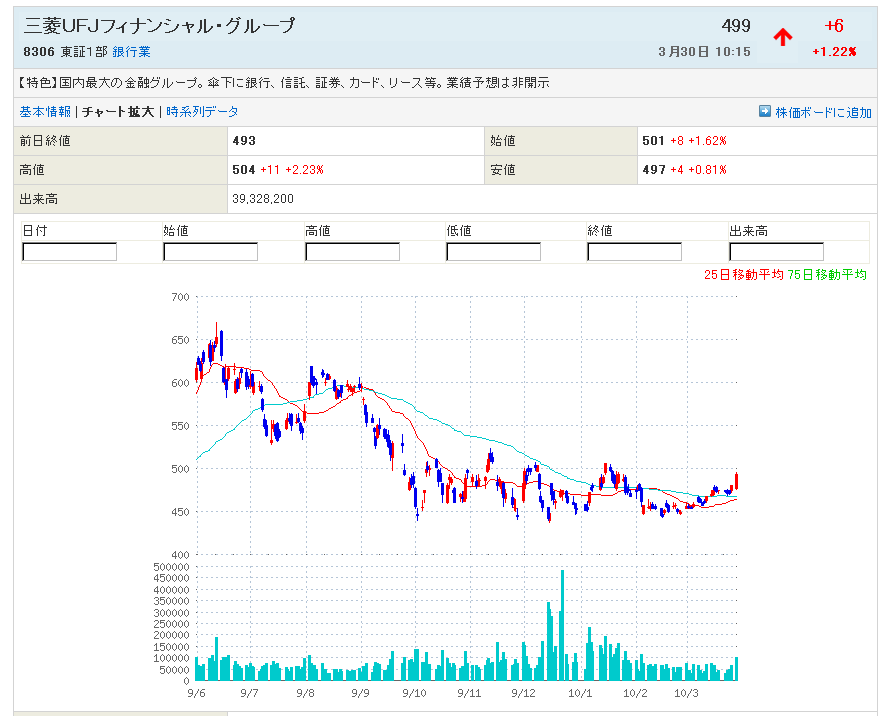 みずほは昨日と同金額ですが三井住友 三菱UFJは前日比を上回っています。