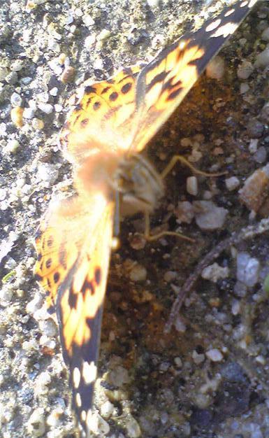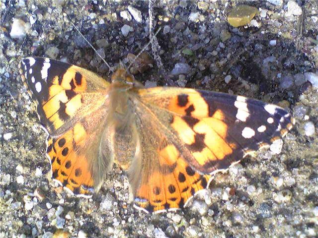 ちょう にらめっこ ヒメアカタテハ:ちょうの頭からにらめっこです。3~5cm近くから撮っています。寒いので飛んでは見たものの、あったまるまで時間がかかります。日向ぼっこも必死です。2010.3.27天白公園