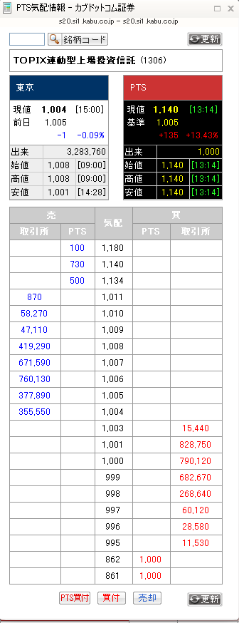 カブコムPTSで1306に誤発注がありました。