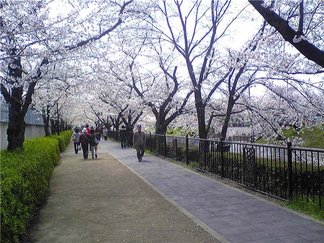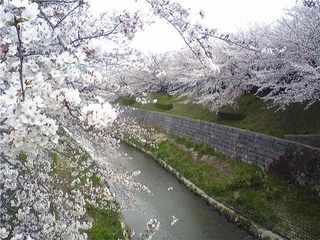 はな、 山崎川 、花見:石川橋と新瑞橋の間の山崎川はさくらの名所に選ばれていますが、特にかなめ橋付近が綺麗です。駐車場は瑞穂公園の地下に止めていきました。警察の車が巡回し、路上駐車は難しいです。公共の施設に止めていく手もあります。さくら吹雪の舞うときもあり、満開でした。やきイモの屋台が沢山出ていました。