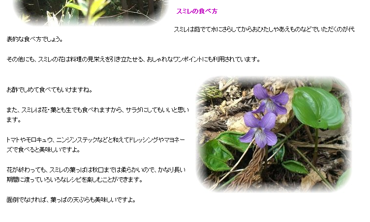 すみれが食べられるとは知らなかったです。
