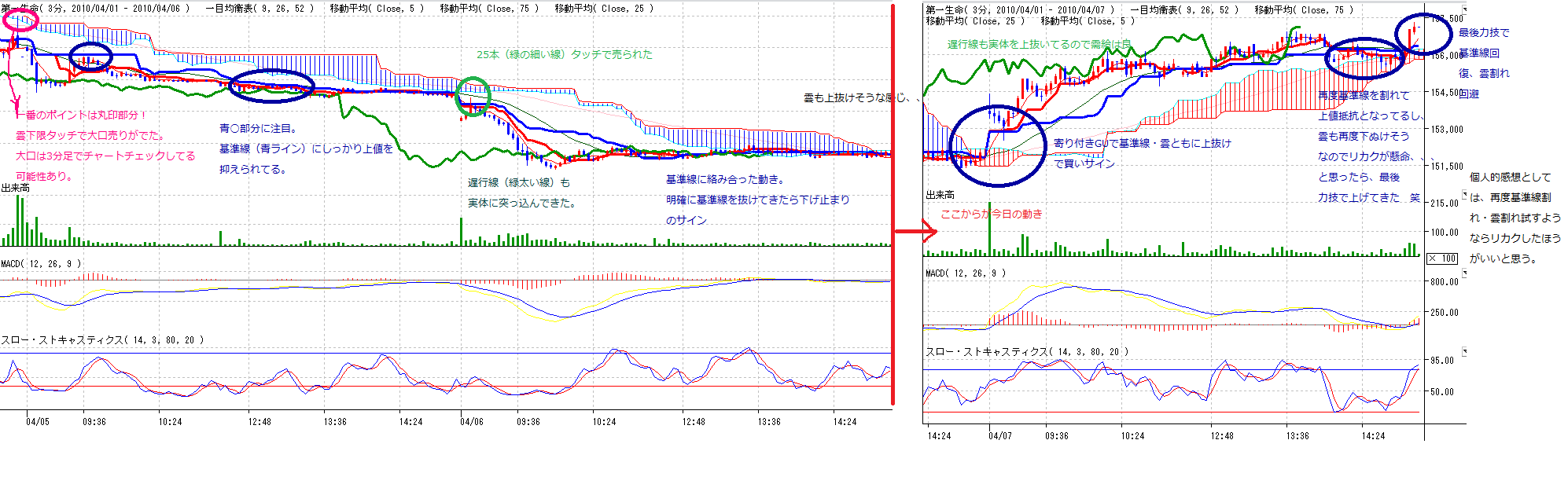 ・再度基準線われ・雲下抜けそうなので売りサイン、、、と思ったら、最後力技で回避した^^;