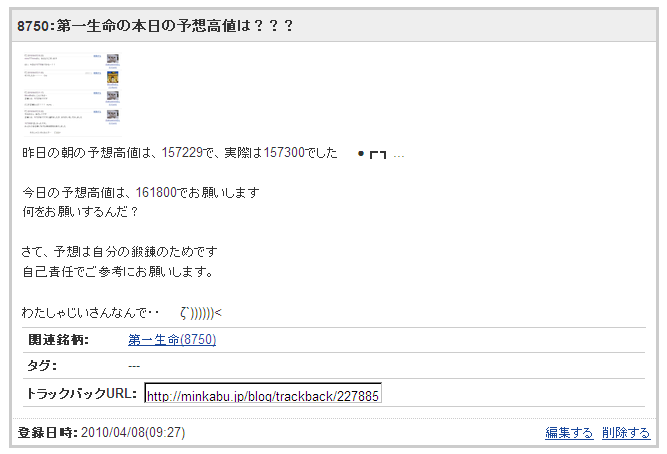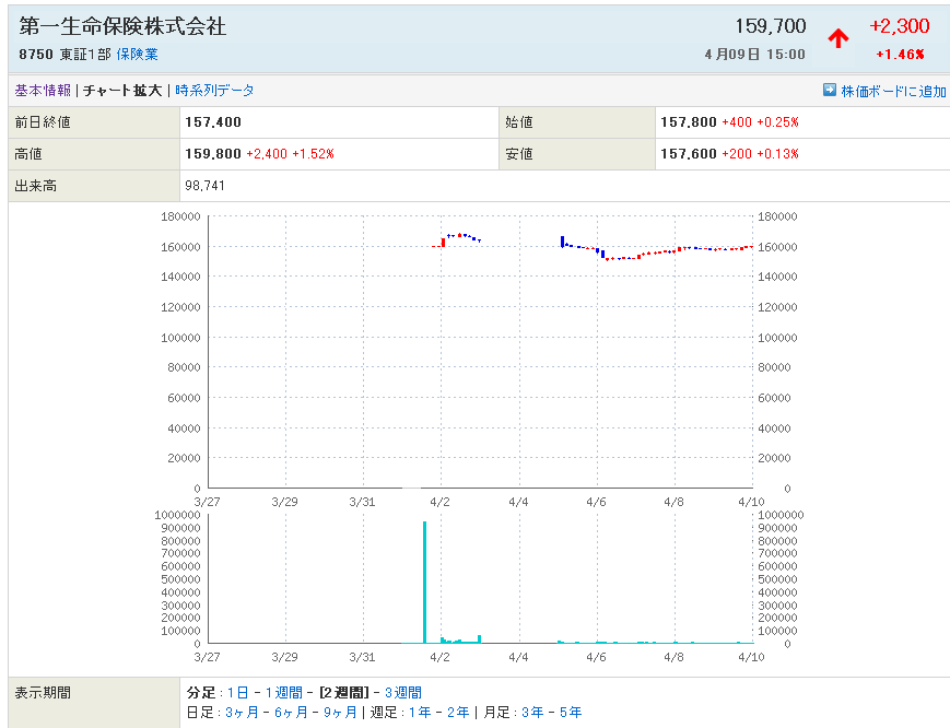 8750:第一生命の月曜日の予想高値は???