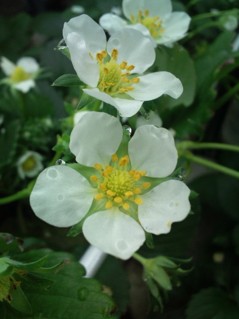 いちごの花を初めてみました。白くて可愛い♡♡♡