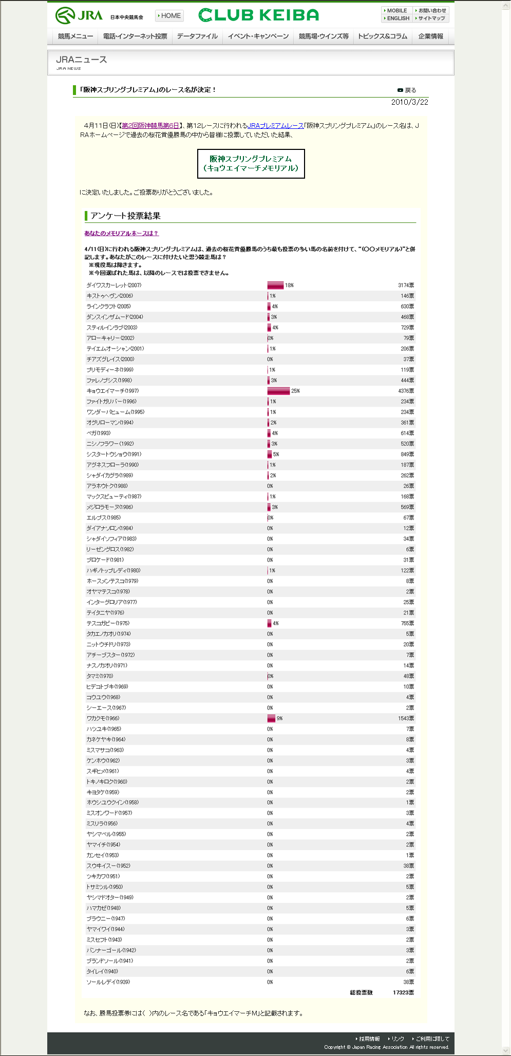 この場を借りて、レース名を投票された競馬ファンにお礼を申し上げます。
