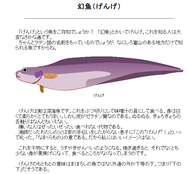 越中の富山湾だけで獲れるゲンゲは、魚の中でも、下の下、魚の下道衆です