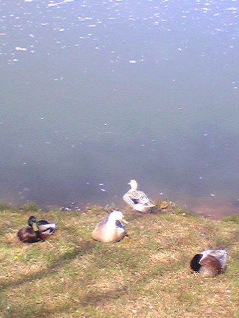 かるがも、花見、にいのみ池 :カルガモが良い天気だね?何か流れてくるねなんだろう。この後えさと勘違いか見に行きました。ホノボノとしています。
