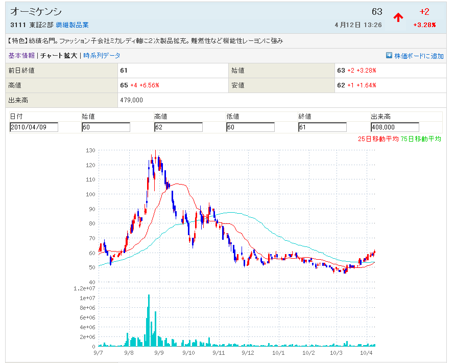 3111:オーミケンシ 仕手相場を演出するでしょうか?