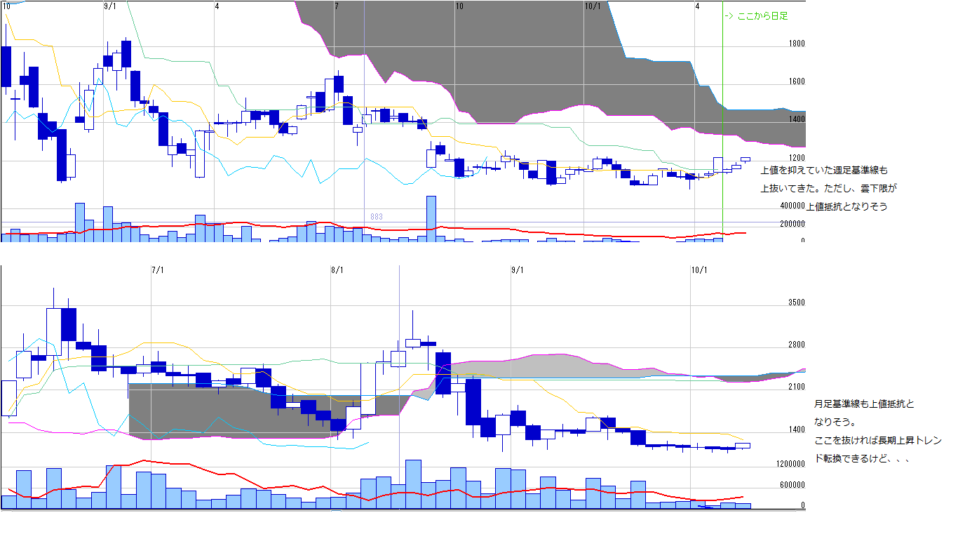 底ばいの状況がずっと続いており、完全に出遅れた銘柄ではないかと思っています。