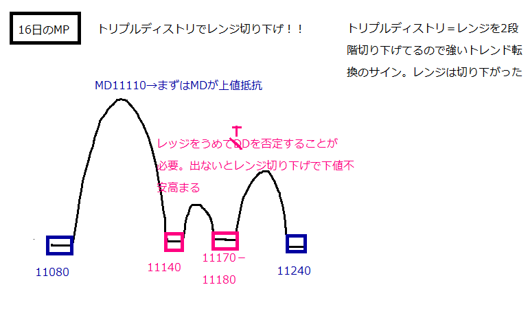 10870にレッジを残したDDでレンジ切り上げ形状となってるので、今度はここを維持できるかどうかがポイント。埋めればDD否定でレンジ切り上げは失敗、下値不安高まる。