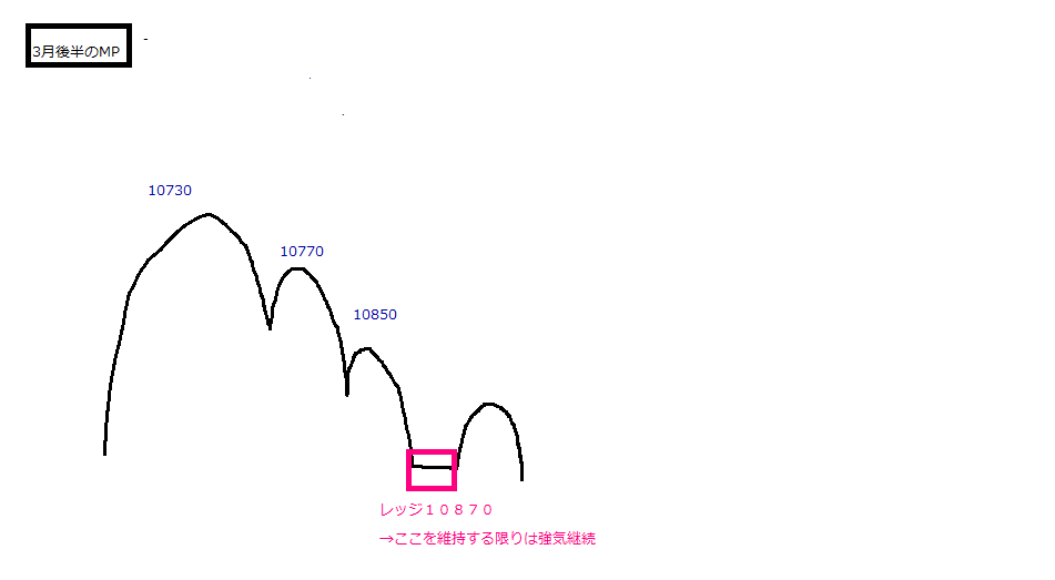 >10870にレッジを残したDDでレンジ切り上げ形状となってるので、今度はここを維持できるかどうかがポイント。