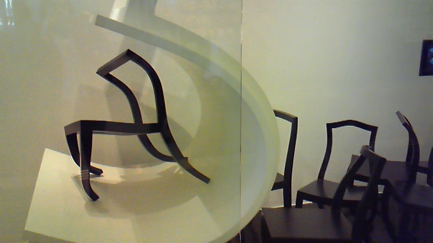 > まるで「5」という数字の中に入った感じの黒い椅子。気になりますね~。
