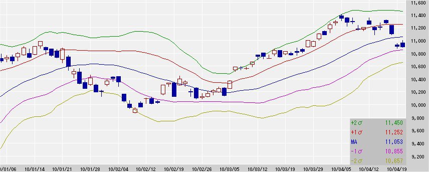 (始値10,960.11レンジ10,890.82-10,999.57±108.75)