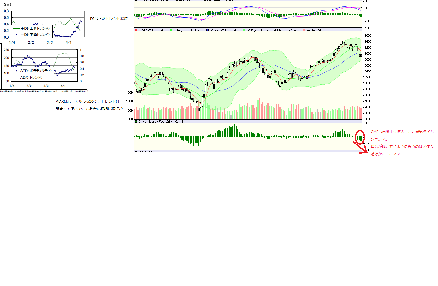 CMFをみると資金は逃げ出してる感じ。
