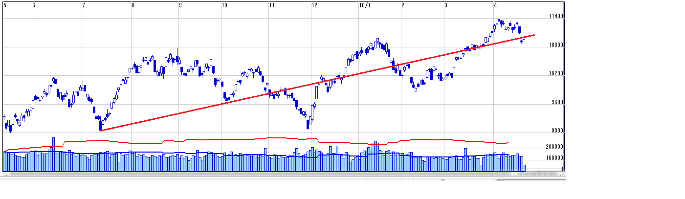 日経、チャート崩れて、下げっぽいんですよね~。
