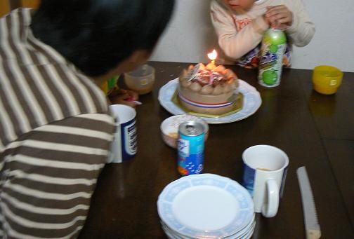 (ろうそくを吹き消そうを虎視眈々と狙ってるのは2号♂)