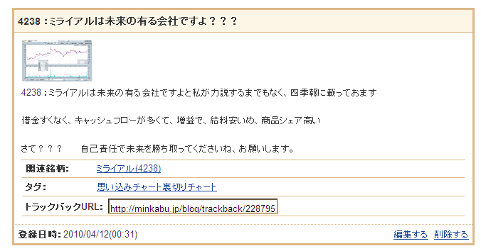 4238 :ミライアルは未来の有る会社ですよ??? と書きましたが、お約束通りに(どんな約束だ?)上げてきました